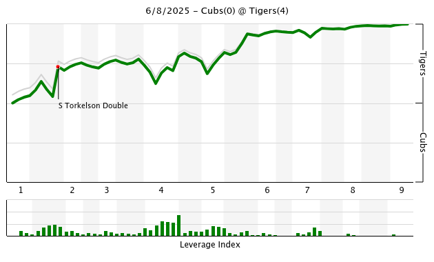 The Tigers actually threw a lot of pitches for how dominating they were. four hits and three walks. The Cubs just couldn’t get enough traffic. This series made the Cubs look like a team that struggled to score without the long ball. But I don’t think that’s a Cubs feature but a hat tip to the Tigers.