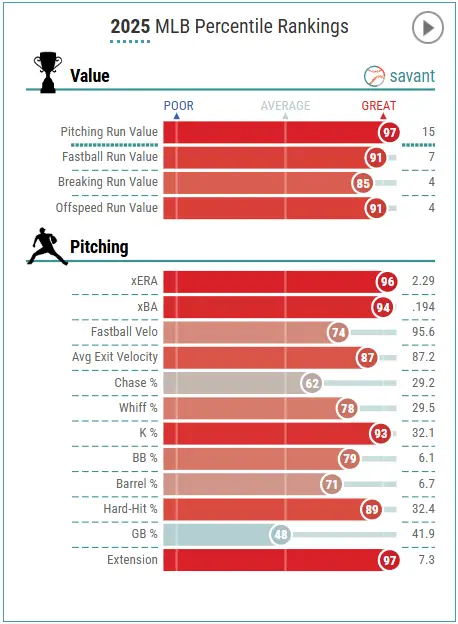 They’re up against 35-year-old Zack Wheeler, one of the best and most consistent starters in baseball since 2021. Over the last four-plus seasons, he leads all pitchers with 24.8 fWAR; his 940 strikeouts trail only Dylan Cease (976); and his 834.1 innings are behind only Logan Webb (848.2). Among pitchers with at least 200 innings in that time, Wheeler’s 2.94 ERA is tied for 10th and his 2.93 FIP is seventh. Again, he’s been very consistent and his results match the underlying data.