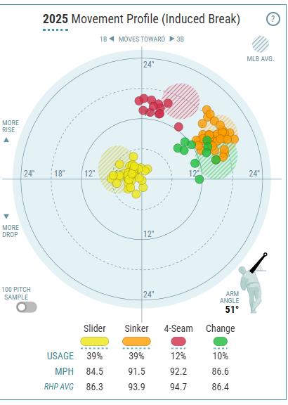 2025 Stats (prior to this start): 49 1/3 IP, 4.56 ERA, 4.71 FIP, 10.2% K-BB%