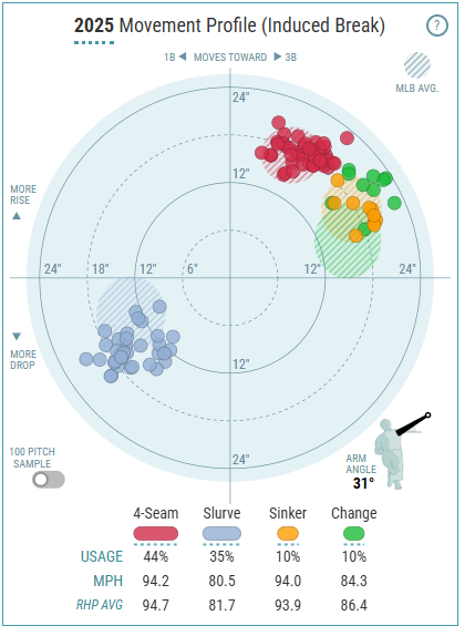 2025 Stats (prior to this start): 31 IP, 5.81 ERA, 4.55 FIP, 16.8% K-BB%