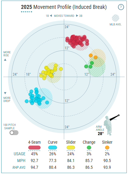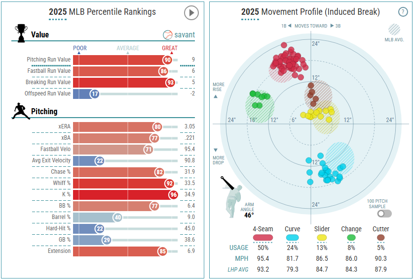 2025 Advanced Stats: 3.20 SIERA, 3.70 xERA, 29.7% K%, 34.3% GB%, 99 Stuff+