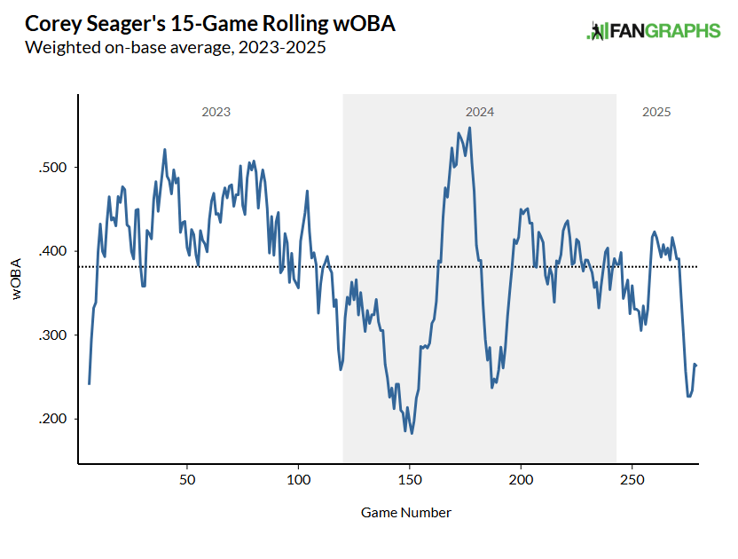 Corey Seager is slumping hard, but despite the season-long consistency this is actually a very normal occurrence for him. Nothing about this slump strikes me at unusual, so I anticipate a steep correction soon.