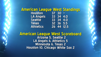 Seattle’s loss combined with an Angels 6-5 win over the Athletics puts the Mariners and LA in a tie for second place in the American League West. They’re both 4-games behind Houston after the Astros beat the White Sox 10-2. Minnesota got by Texas 6-2.