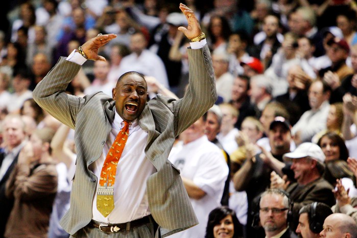London Lightning coach Michael Ray Richardson celebrates after defeating the Halifax Rainmen to win the National Basketball League of Canada championships final in London, Ontario on March, 25, 2012.