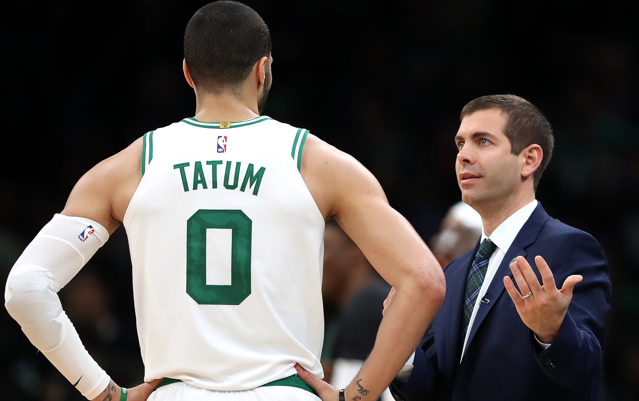 Brad Stevens coaching the Celtics in 2019, before moving to the front office in Boston. (Maddie Meyer / Getty Images)