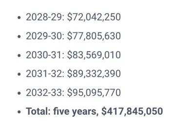 Further, the team got Jalen Brunson to take a $113 million pay cut to win now. Brunson is owed significantly more down the road, with the Knicks only having until 2027-28 before Brunson is eligible to sign a supermax contract that looks like… this: