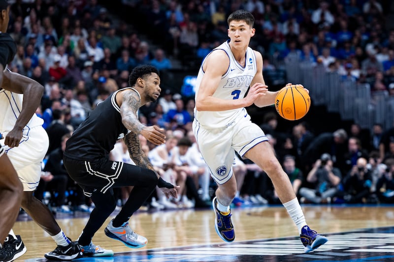 BYU Cougars guard Egor Demin (3) drives the ball past Virginia Commonwealth Rams guard Zeb Jackson (2) during a first-round college basketball game in the NCAA Tournament held at Ball Arena in Denver, Colo., on Thursday, March 20, 2025. | Isaac Hale, Deseret News Egor Demin — BYU — guard — 6′8.25″ (without shoes)