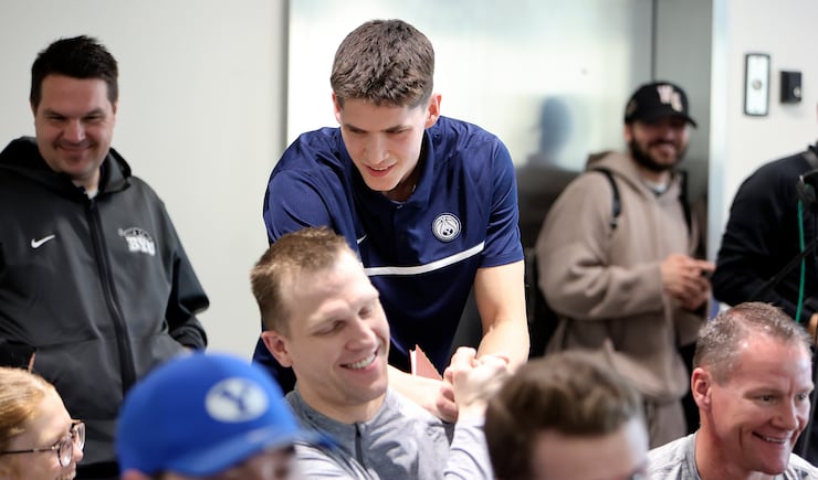 “I just love this place so much,” he said, in what amounted to a pitch to other prospects to consider the school supported by The Church of Jesus Christ of Latter-day Saints, of which he is not a member. “Cougar Nation is a huge part of who I am now. … This place is full of smart people and dedicated people … trying to make you better, on the court, and off the court.”
