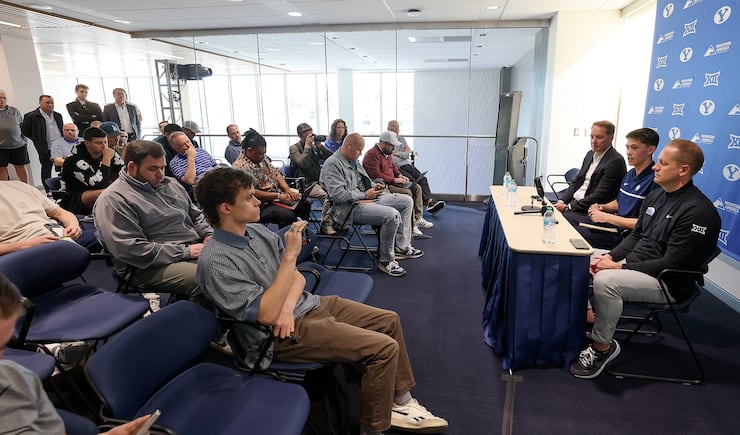 Among those in attendance at the presser were BYU basketball players Richie Saunders, Dawson Baker, Brody Kozlowski, Mihailo Boskovic and Jared McGregor. Of course, Saunders, 23, has a similar decision to make, albeit from a different angle, having played at BYU the past three seasons and now seen as a potential NBA prospect because of his rapid rise in the 2024-25 season in which BYU went 26-10, made it to the Sweet 16 of the NCAA Tournament, and finished with a No. 13 ranking in the final Associated Press Top 25 poll released on Tuesday.