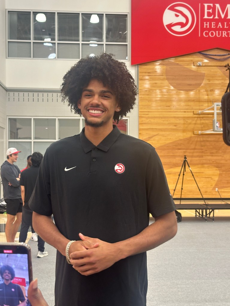 The Atlanta Hawks’ first-round selection, Asa Newell, was introduced to the press on Friday morning. The introductory press conference occurred at the Hawks’ practice facility at the Emory Sports Medicine Complex in Brookhaven.