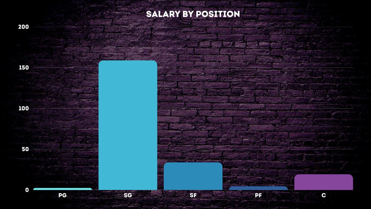 What should immediately jump out at you is that there’s precisely one PG on the team, and he’s a vet minimum player. You can also see that there are 4 or 5 guys who are natural shooting guards on the team (depending on whether Koby Brea is more of a 2 or 3), and the team is spending a lot of money on those shooting guards. The graph below shows the dollar values spent on each position (as shown in the table above), in millions of dollars.
