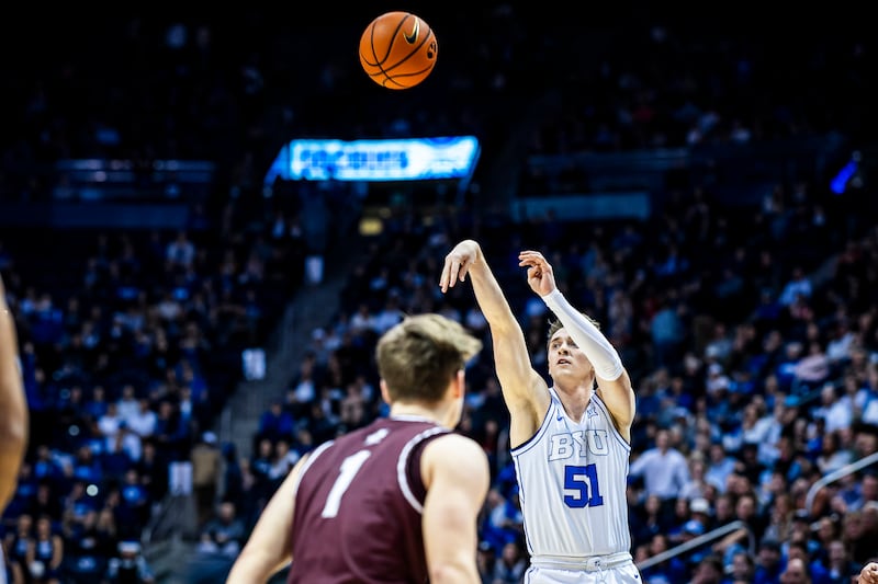 BYU guard Jared McGregor attempts a 3-point shot against Bellarmine on Dec. 22, 2023, in Provo. | Nate Edwards