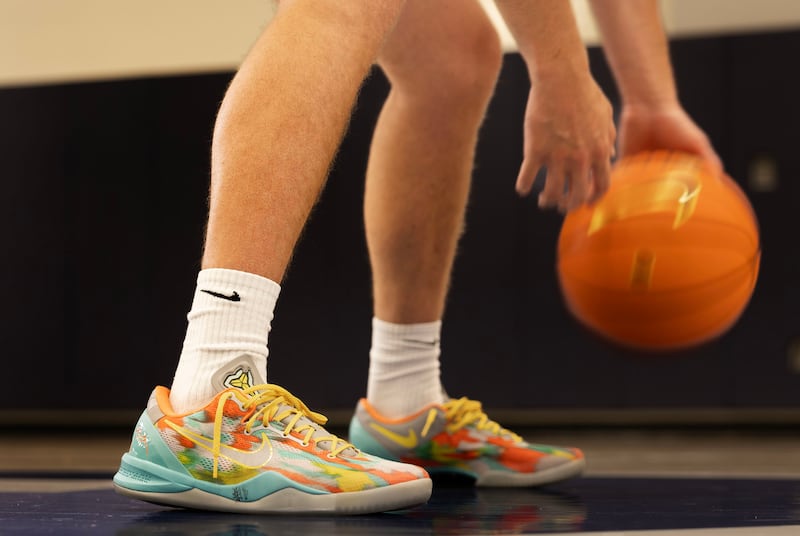 BYU basketball player Jared McGregor wears his sneakers that were autographed by Dmitri Moore in Provo on Friday, June 27, 2025. | Laura Seitz, Deseret News