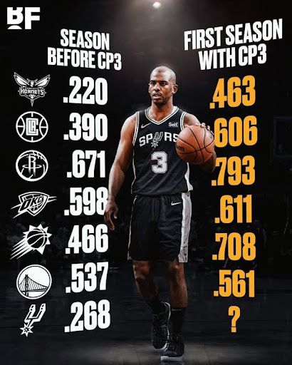 It’s no secret that everywhere CP3 goes, his team gets better. Even now in his 40s, I suspect this would be true given the Suns have no starting PG, and that lack of a PG forces their best player (Booker) to play out of position and reduce his on-court value.