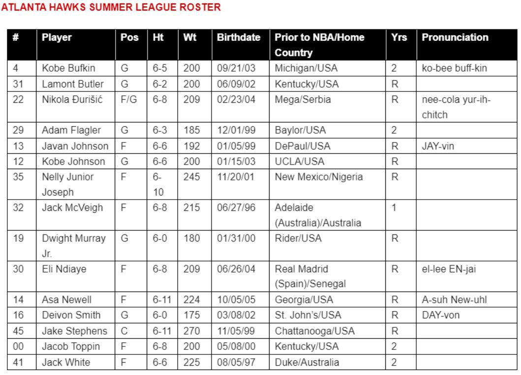 The Atlanta Hawks have announced their roster for the summer competition in a release today: