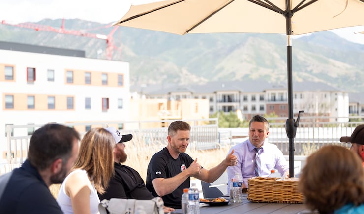 Wes Wilcox, men’s basketball general manager of the Utah Utes, speaks to members of the media at an informal gathering at the university in Salt Lake City on Wednesday, June 25, 2025. | Laura Seitz, Deseret News