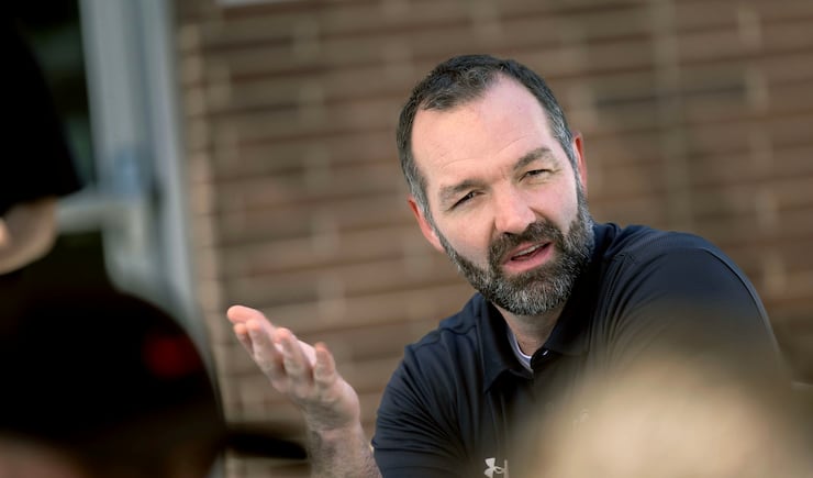 Wes Wilcox, men’s basketball general manager of the Utah Utes, speaks to members of the media at an informal gathering at the university in Salt Lake City on Wednesday, June 25, 2025. | Laura Seitz, Deseret News Rebuilding the roster