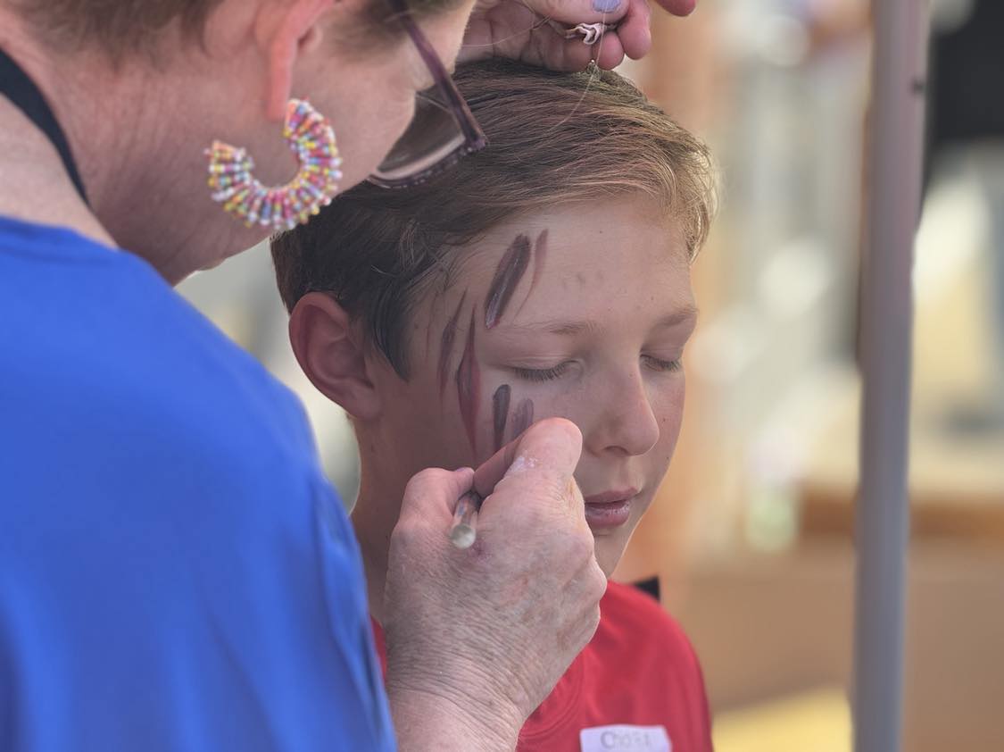 A student at Samuel W. Tucker Elementary School gets his face painted, Aug. 23 2024 (staff photo by James Cullum)