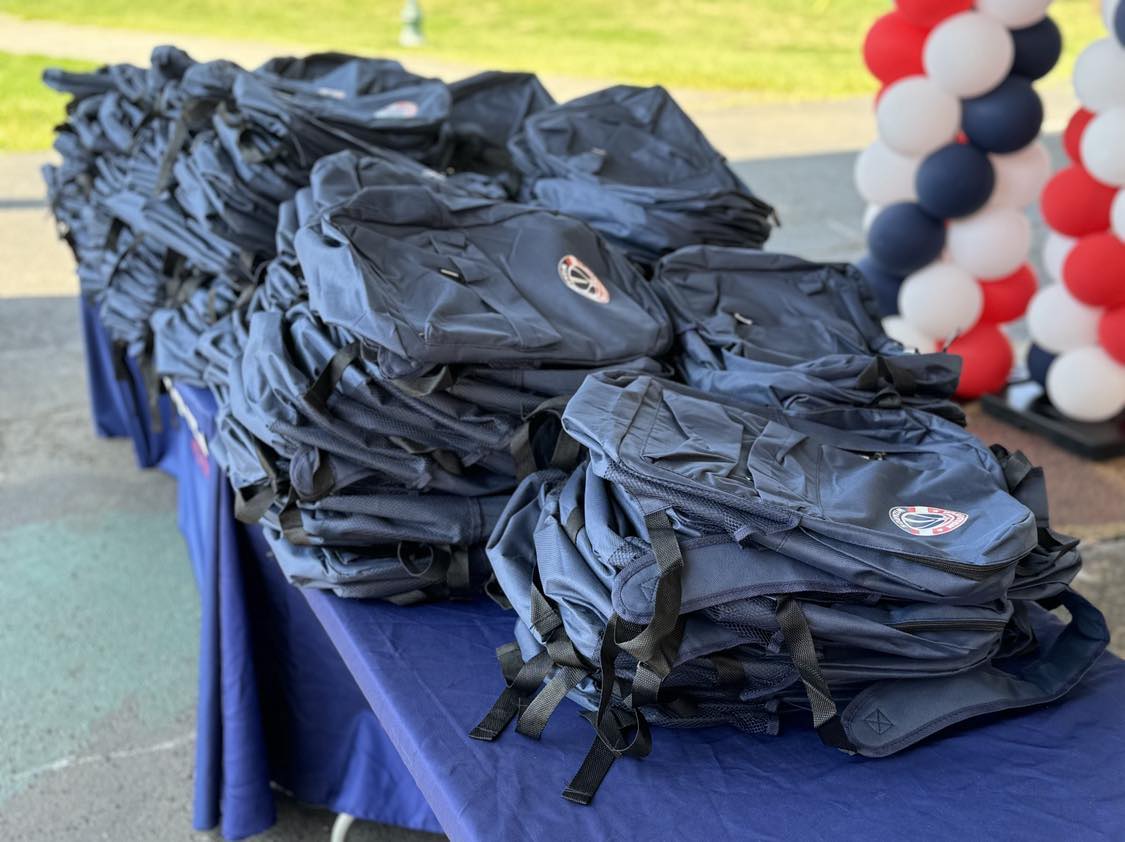 Two hundred backpacks were given by the Washington Wizards to students at Samuel W. Tucker Elementary School in ALexandria’s West ENd, Aug. 23, 2024 (staff photo by James CUllum)