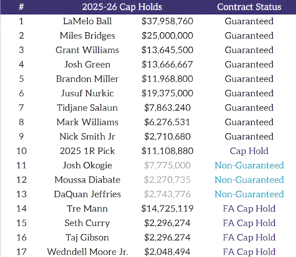 Charlotte is locked into a top-7 pick in the upcoming NBA Draft and also owns picks No. 33 and 34 early in the second round — valuable assets for a team in need of both talent and depth. On the financial side, however, things are more constrained. The Hornets are projected to remain over the $154 million salary cap, effectively ruling out any pursuit of marquee free agents. For those holding out hope of a splashy signing — it’s time to wake up.