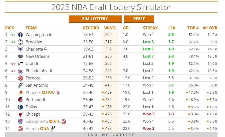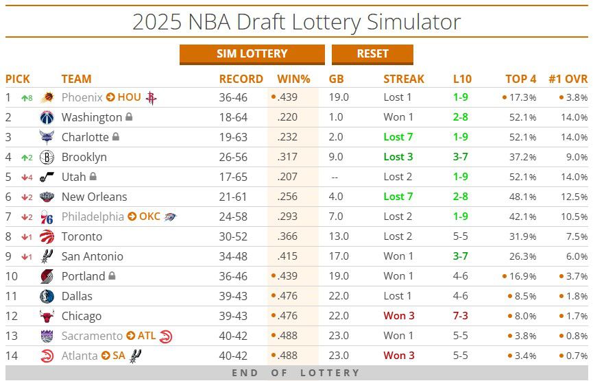 Over the course of the next couple weeks, we will run a daily Tankathon simulation every day until the NBA Draft Lottery takes place on May 12th. We’ll recap the spins and dive into who could potentially be available at that pick based off of what numerous mock drafts have projected.