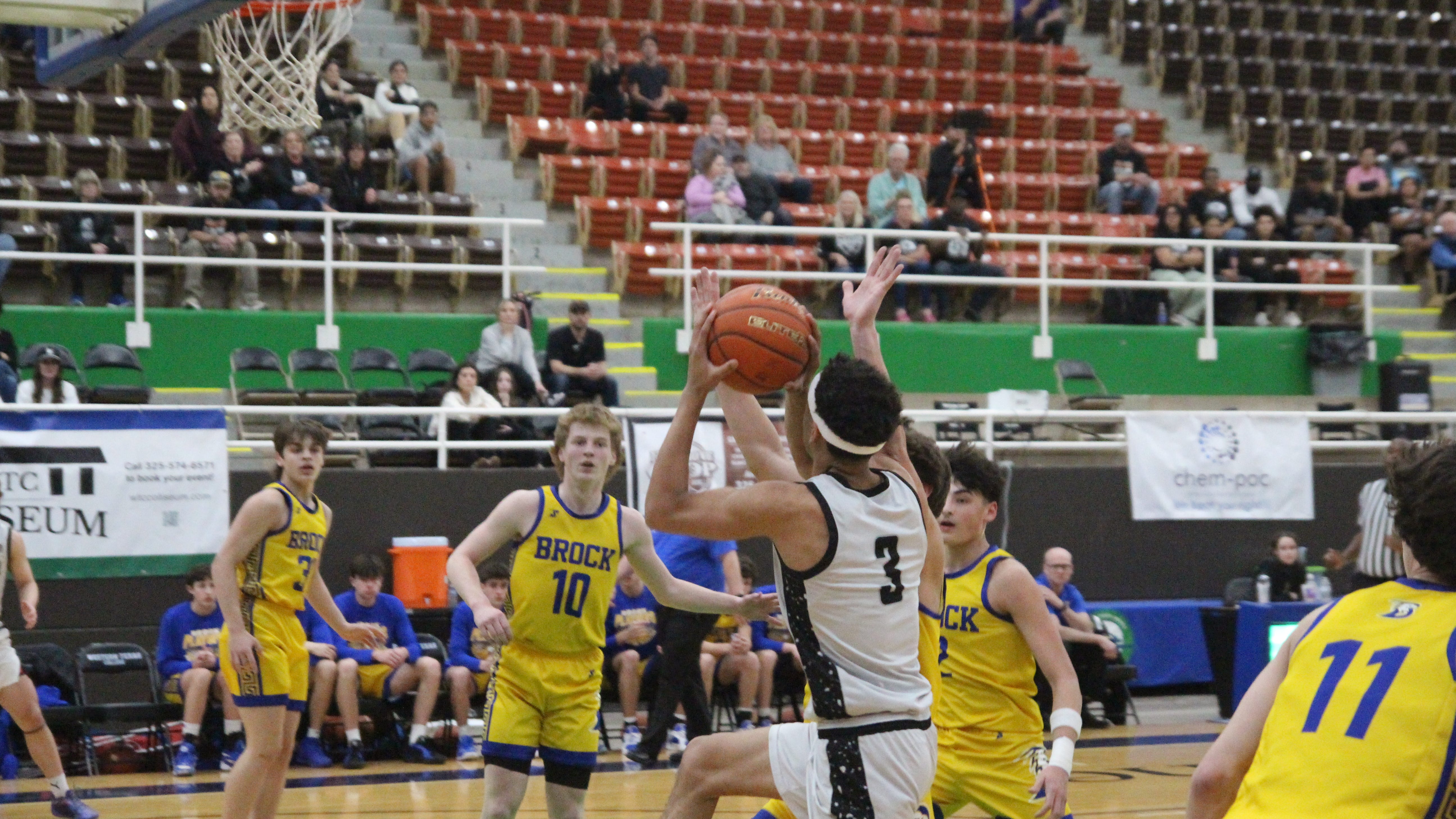 Randall basketball’s Tayesen Combs drives and scores against Brock
