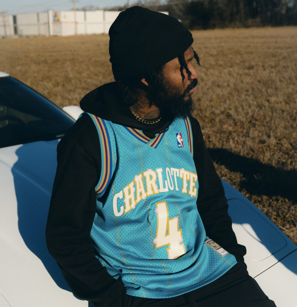 Beloved Charlotte rapper Lute wearing the new Charlotte Hornets “Black Excellence Jersey” designed by Mike Jones.