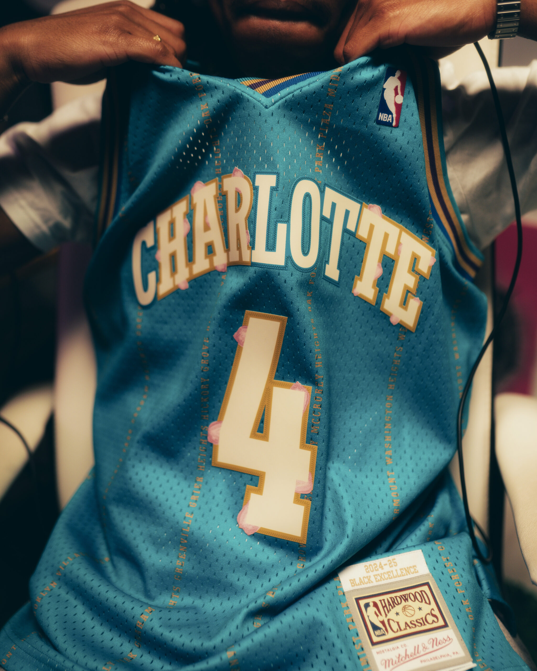 The Charlotte Hornets Mitchell & Ness “Black Excellence Jersey” is a first-of-its-kind collab with Mike Jones.