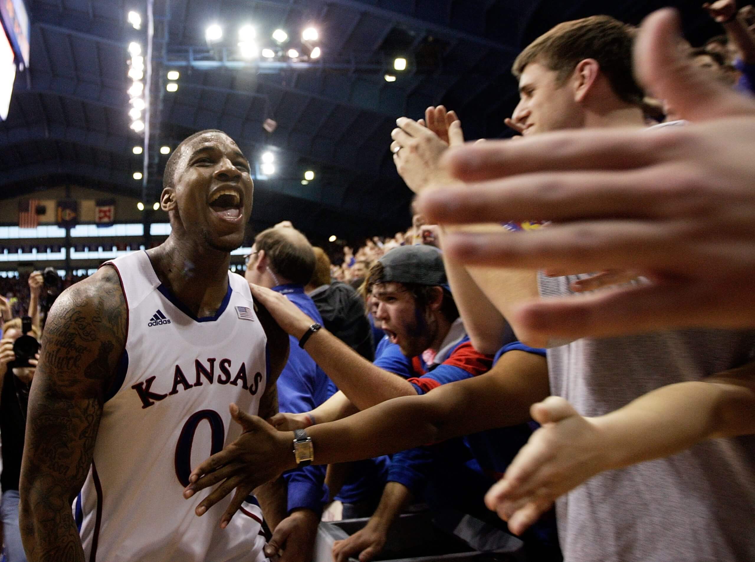 Thomas Robinson celebrate Kansas’ Border War win over Missouri in 2012. (Jamie Squire / Getty Images)10. Indiana 73, Kentucky 72