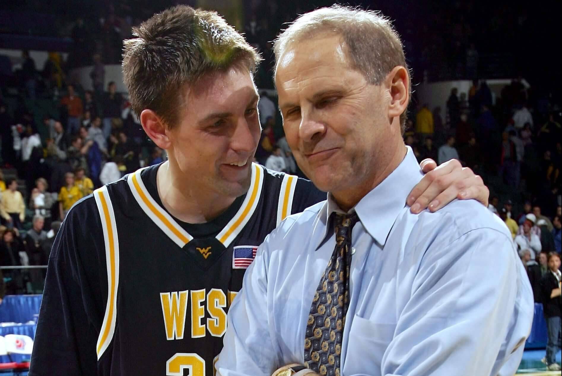 West Virginia guard Mike Gansey and coach John Beilein rejoice after the win over Wake Forest. (Lisa Blumenfeld / Getty Images)20. Kansas 72, North Carolina 69