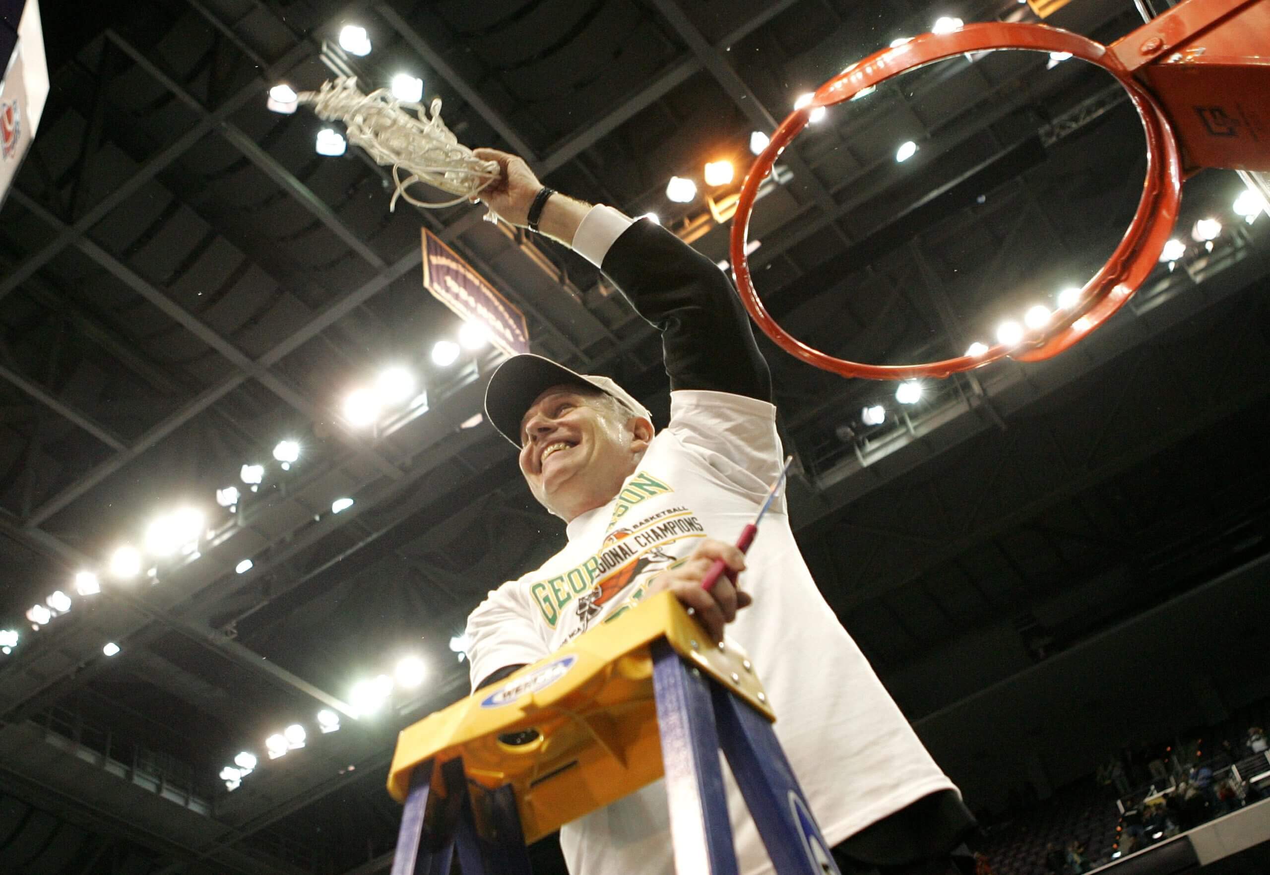 Coach Jim Larranaga cuts down the nets after George Mason’s Elite Eight win over UConn. (Win McNamee / Getty Images)5. North Carolina 81, Duke 77