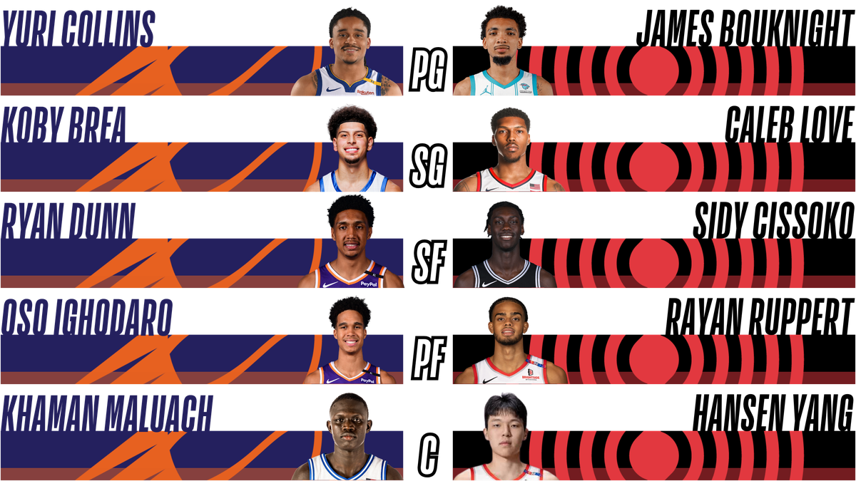 Probably the most intriguing matchup of the night features a clash between two lottery-sized gambles: Phoenix’s 10th overall pick, Khaman Maluach, and Portland’s 16th pick, Hansen Yang. Some draft analysts labeled Yang a reach, but at that stage of the draft, it’s not about consensus, it’s about conviction. You take your guy. And Portland clearly sees something.