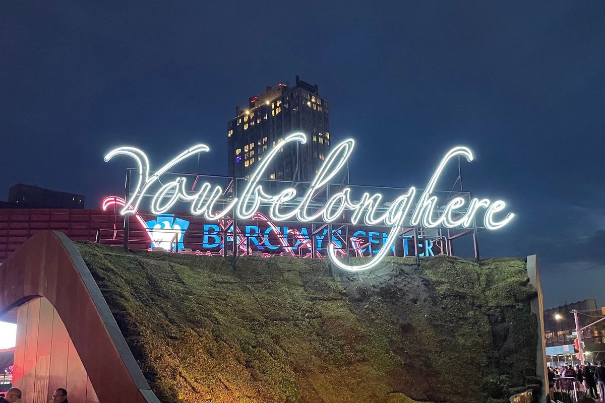 Indeed, Wu Tsai has been instrumental in installing other art around the arena, most prominently the “We Belong Here … “You Belong Here” neon sculpture by Tavares Strachan above the subway entrance across the plaza. She told Cultured its inspiration the $50 million Social Justice Fund she and Joe set up after the George Floyd murder in Minneapolis. Brooklyn protestors used the plaza as a rally point, becoming a town square.