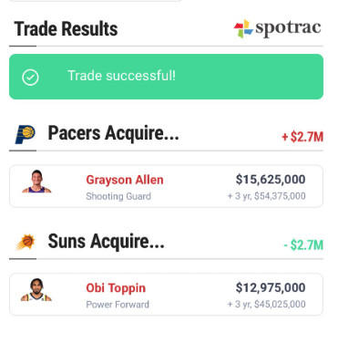 Regardless I think this move works for both parties. If I were sitting in the front office, I would make this happen. They both have 3 years left on their deal and the Suns save money. Obi Toppin makes $12 million while Grayson makes $15. Therefore, Suns fans, I ask you the question.