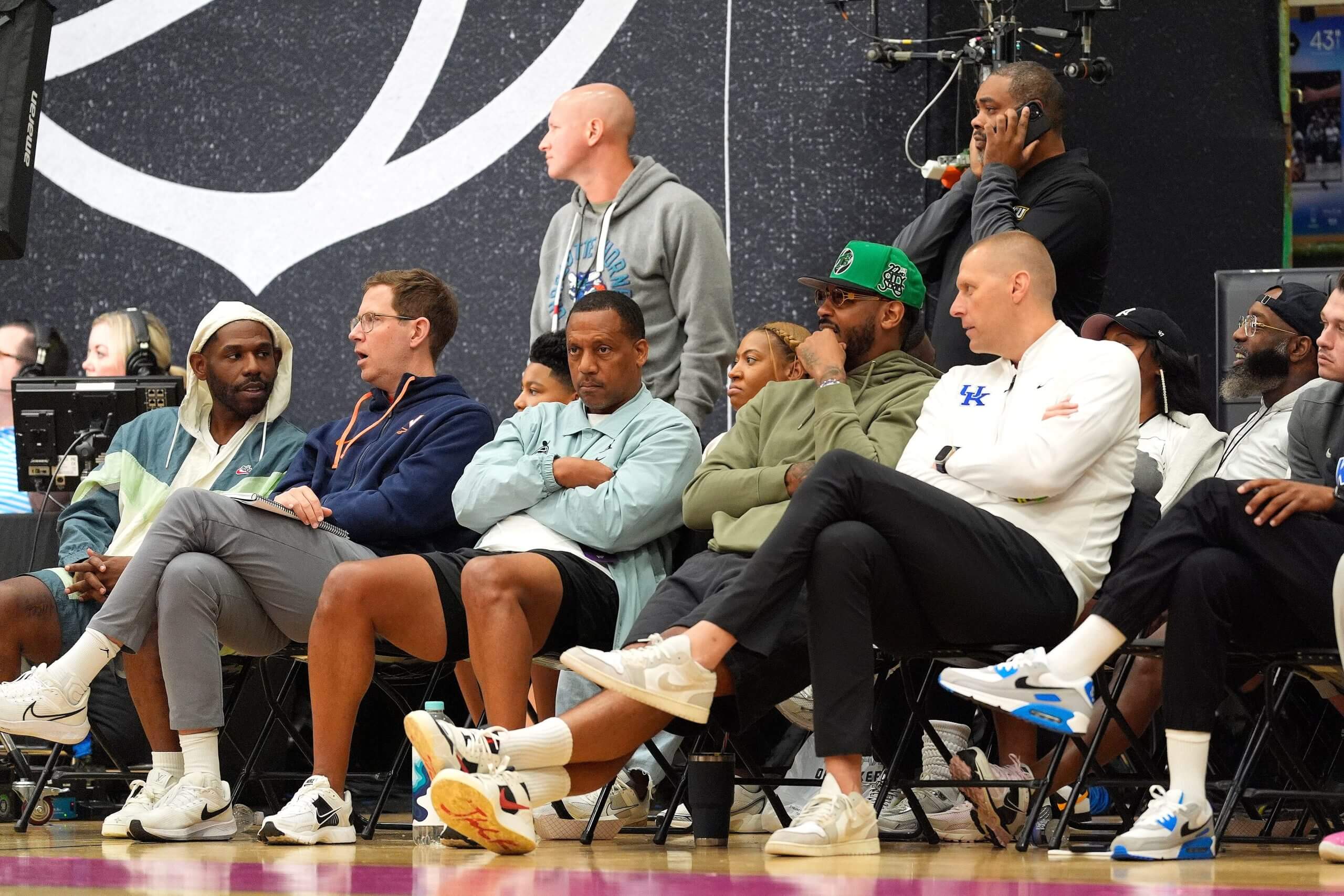 Carmelo Anthony and University of Kentucky coach Mark Pope were among the big names courtside at this year’s Peach Jam. (Katie Goodale / Imagn Images)Best of the best