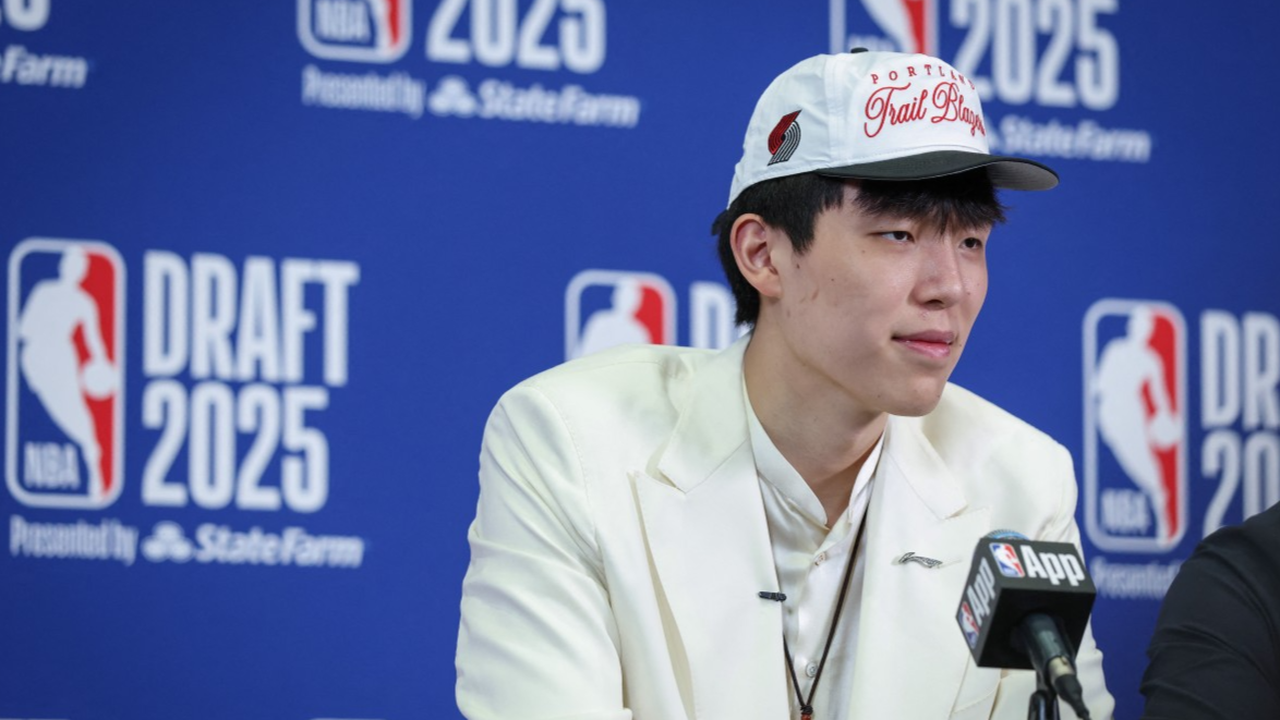 Yang Hansen speaks to the media after being drafted 16th oveall by the Memphis Grizzlies then traded to the Portland Trail Blazers during the 2025 NBA Draft at Barclays Center on June 25, 2025 in the Brooklyn borough of New York City. (PHOTO / AFP)