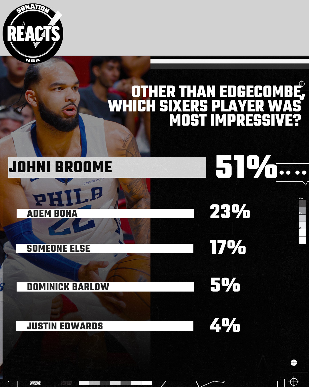 In this week’s 76ers React Survey, we asked our readers which Sixer—other than Edgecombe—impressed them the most in Summer League. The results are in…