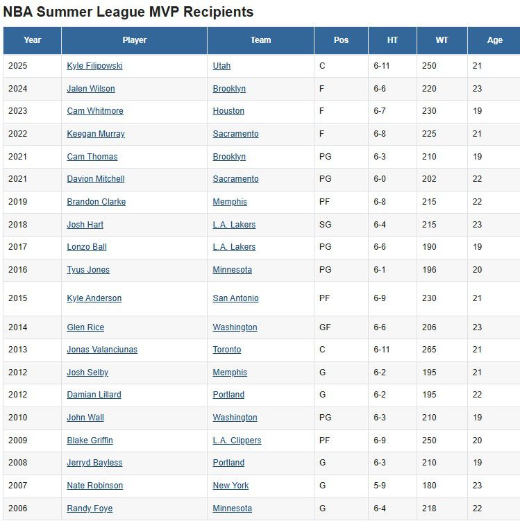 You could look at this and not be impressed because of how few “stars” are listed, but what I see is a lot of NBA players that played in the league for a long time (including current Jazzman, Kyle Anderson). If we are getting a long-time NBA player in Kyle Filipowski, I find that to be a huge success considering we drafted him in the 2nd round.