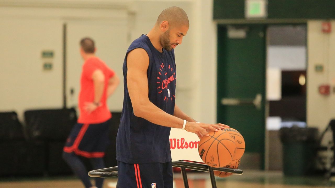Veteran Nicolas Batum worked on two-hand dribbling. (Spectrum News/Brian McInnis)