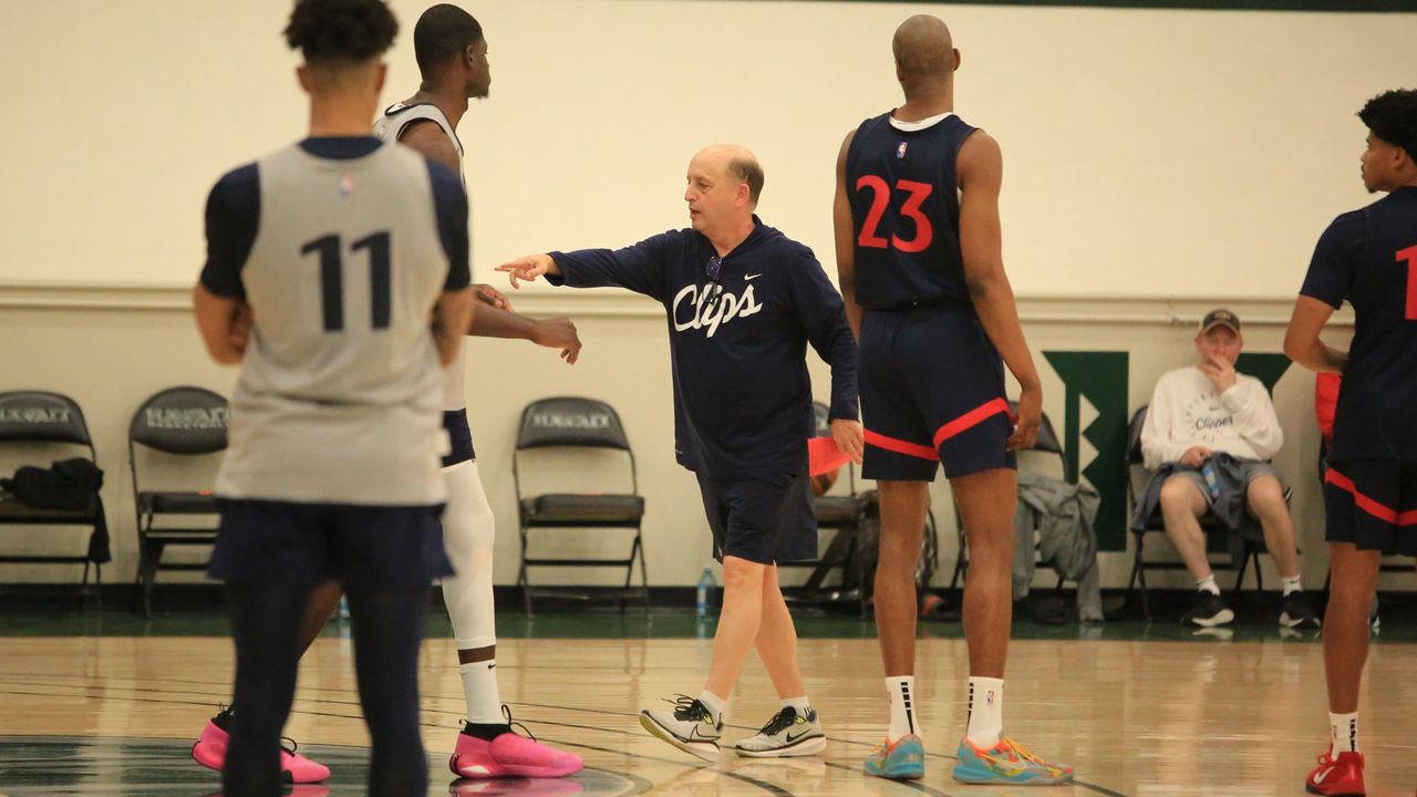 Already putting Clippers youngsters through their paces was former New York Knicks head coach and ex-ESPN analyst Jeff Van Gundy, a June acquisition as lead assistant. While Lue spoke in the media scrum, Van Gundy frantically worked his way between players close to twice his height, offering feedback.