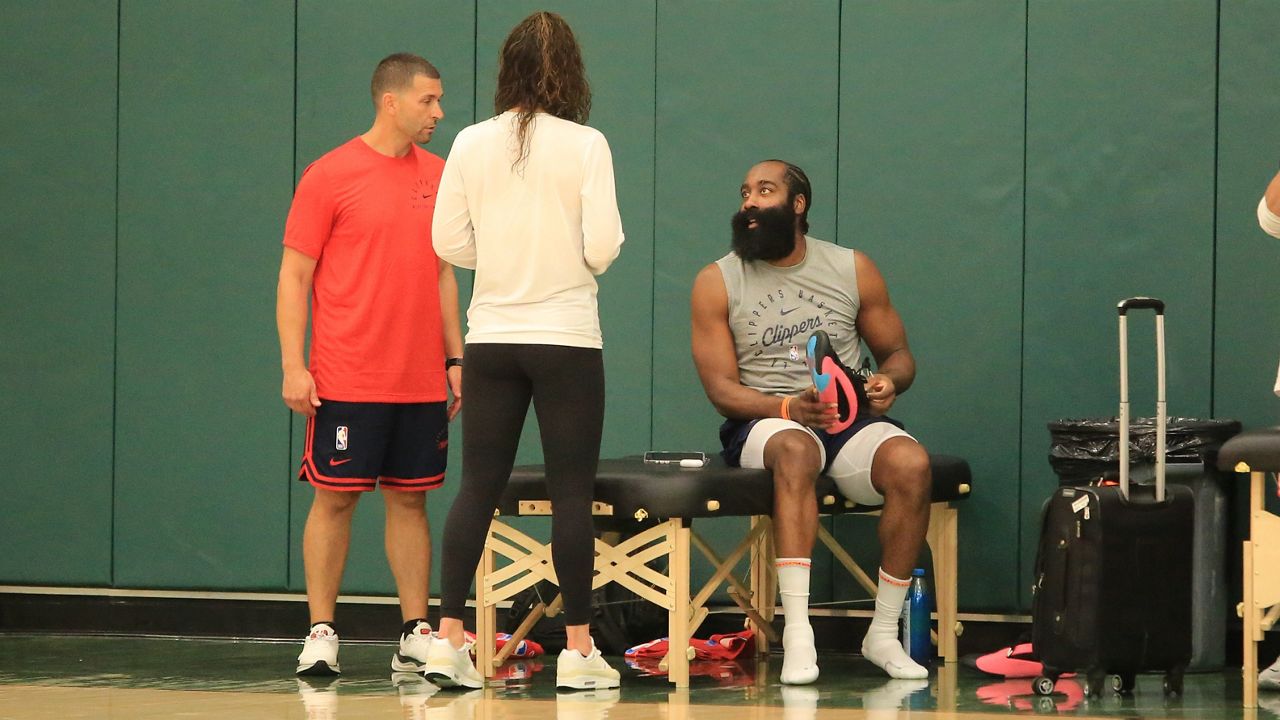 Veteran guard James Harden received treatment from athletic trainers prior to practice. (Spectrum News/Brian McInnis)