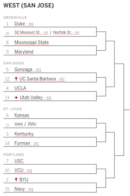With that change, Lunardi has Kentucky taking on 14-seeded Furman during the first round in St. Louis. A win for the Wildcats would pit them against the winner of 6-seed Kansas and 11-seed Iowa/SMU in the Round of 32. Duke is the 1-seed in this region with BYU, Pope’s former team, checking in as the 2-seed and a potential Sweet 16 opponent for UK.