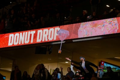Donuts descend from the ceiling of Moda Center. (Eric Shelby)