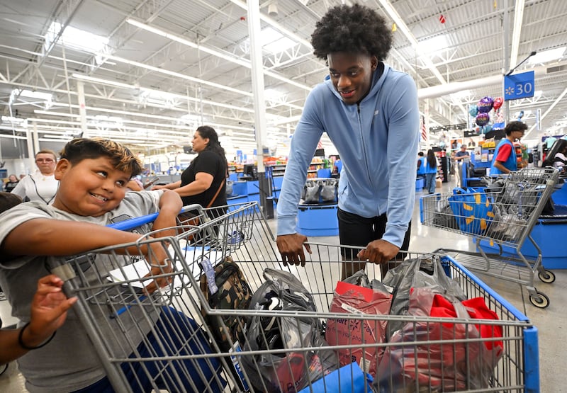 Hendricks didn’t seem to notice the passerby shoppers. He was completely immersed in his duty for the day — a back-to-school shopping spree for a group of kids from local Boys & Girls Clubs.