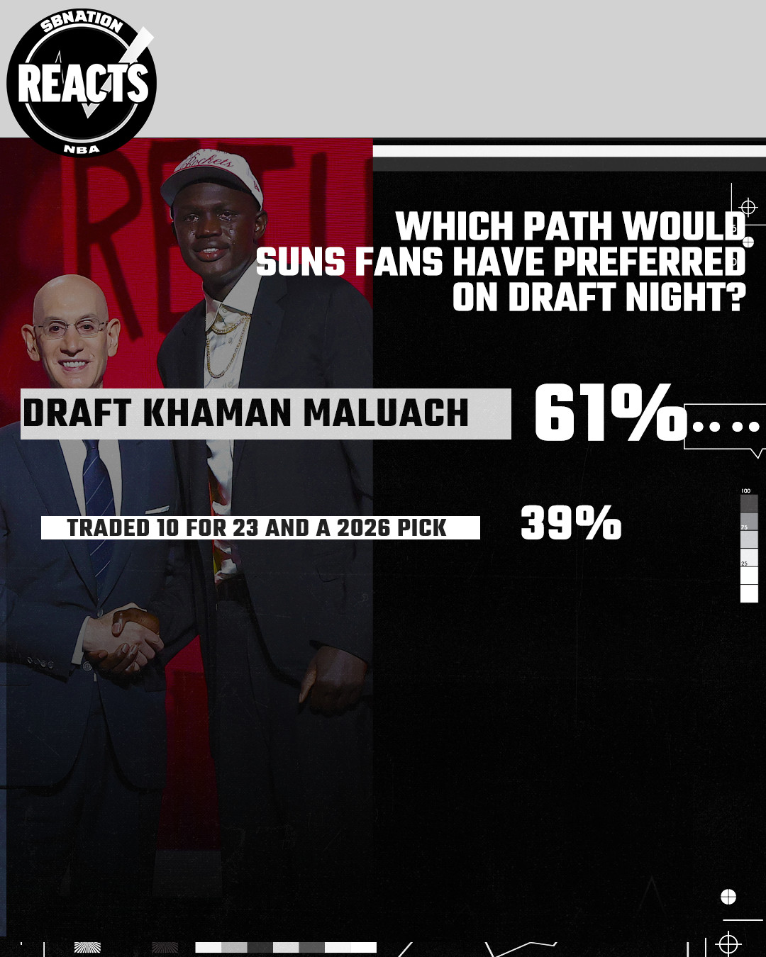 While Maluach has great character, size, and potential, I think Phoenix should have made the deal. The Suns are not in a position of flexibility when it comes to future assets, and in a strong draft, the team still would have had a first round pick and the chance at a high pick in next year’s. With the Suns lacking little to no control for all their picks until 2032, the team is not in a position to have even a chance at a high selection any time soon.