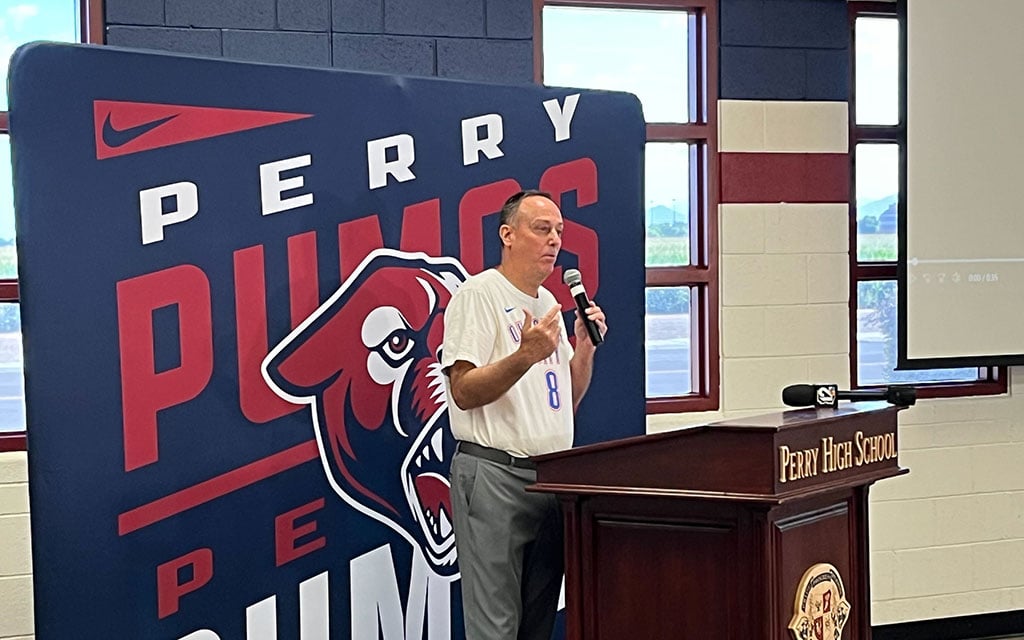 “We’re a family,” Perry principal Heather Patterson said at the event. “We’re all about relationships and making that connection with our kids, coaches and each other.”