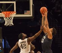 Forward Yanic Konan Niederhauser (14) dribbles the ball during the Penn State men’s basketball game versus Purdue at the Bryce Jordan Center on Thursday, Dec. 5, 2024 in University Park, Pa. The Nittany Lions defeat the Boilermakers 81-70. The Nittany Lions defeat the Boilermakers 81-70.