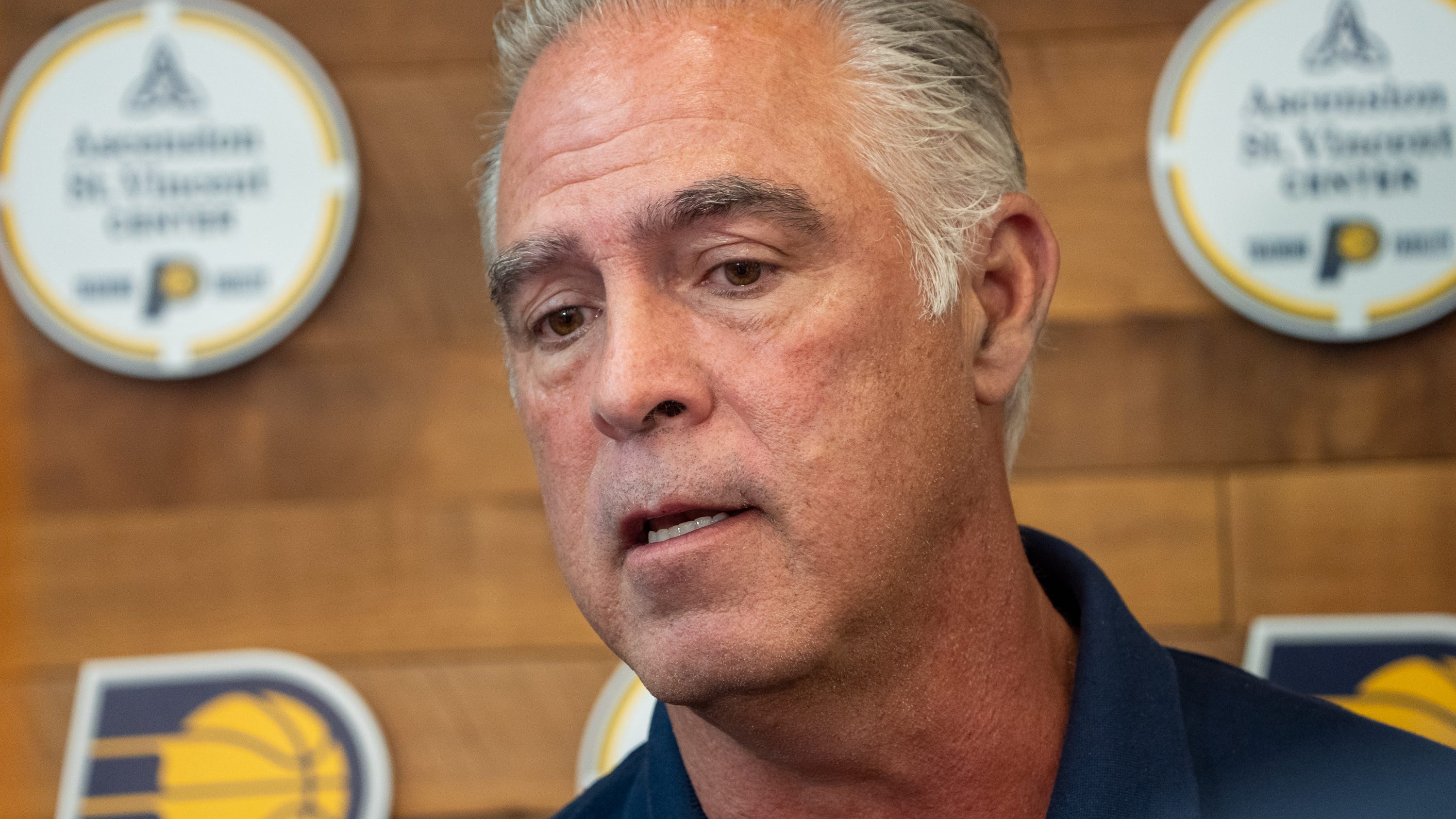 Pacers team president Kevin Pritchard discusses Tyrese Haliburton’s injury and future on Monday, July 7, 2025, in the Ascension St. Vincent Center in Indianapolis.