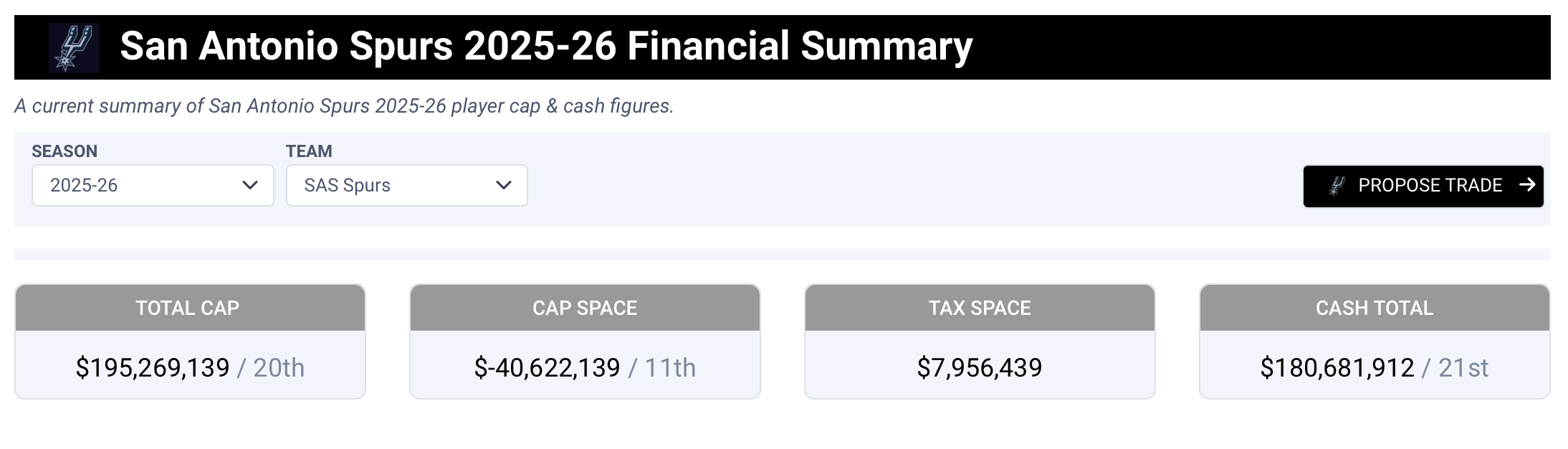 In terms of their cap sheet, San Antonio sit $7.9M under the luxury tax line, allowing them to still have some breathing room throughout the rest of the season. They still have access to the full Bi-Annual Exception that is worth $5.1M and can use this to acquire a player(s) via free agency or trades throughout the year.
