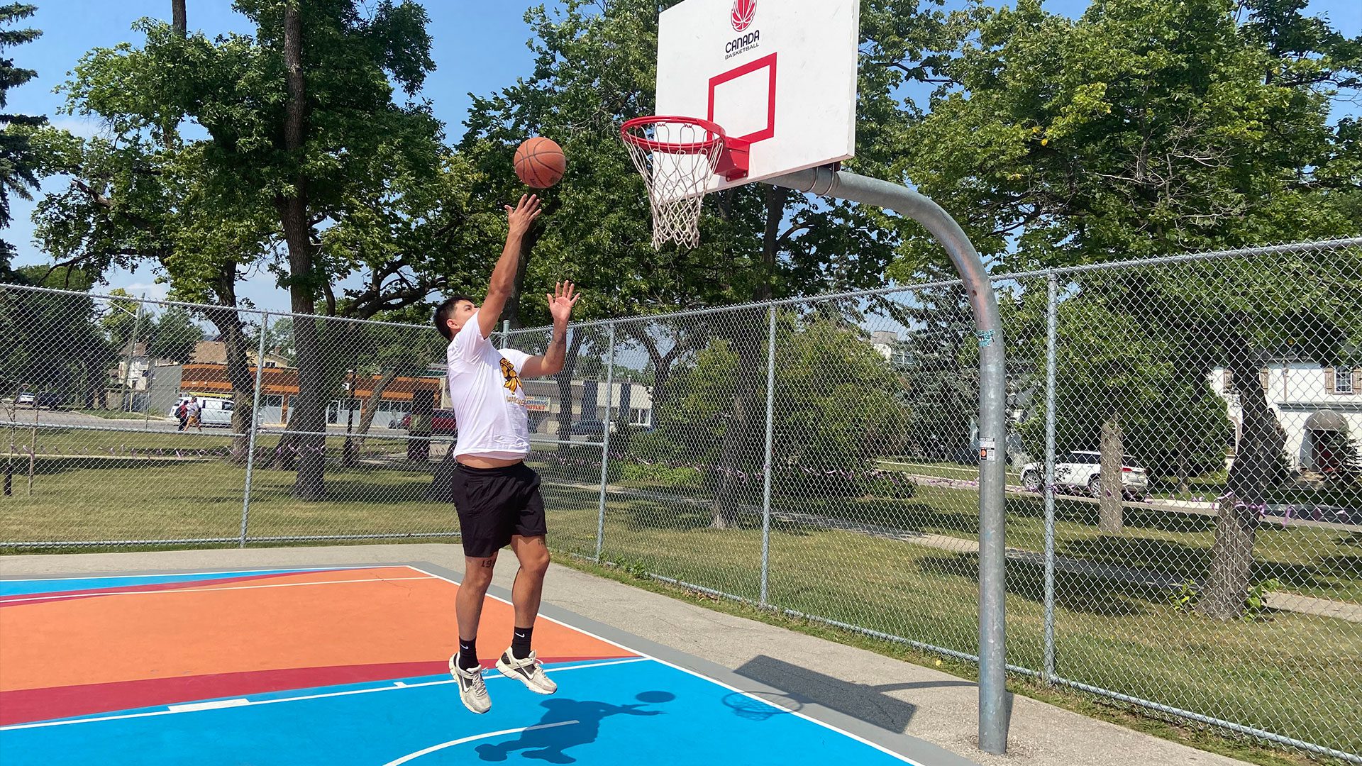 ‘I’m really excited to represent a lot of people, like myself, Indigenous peoples,’ says McKenzie, seen here on an outdoor court in Winnipeg. Photo: Cierra Bettens/APTN.
